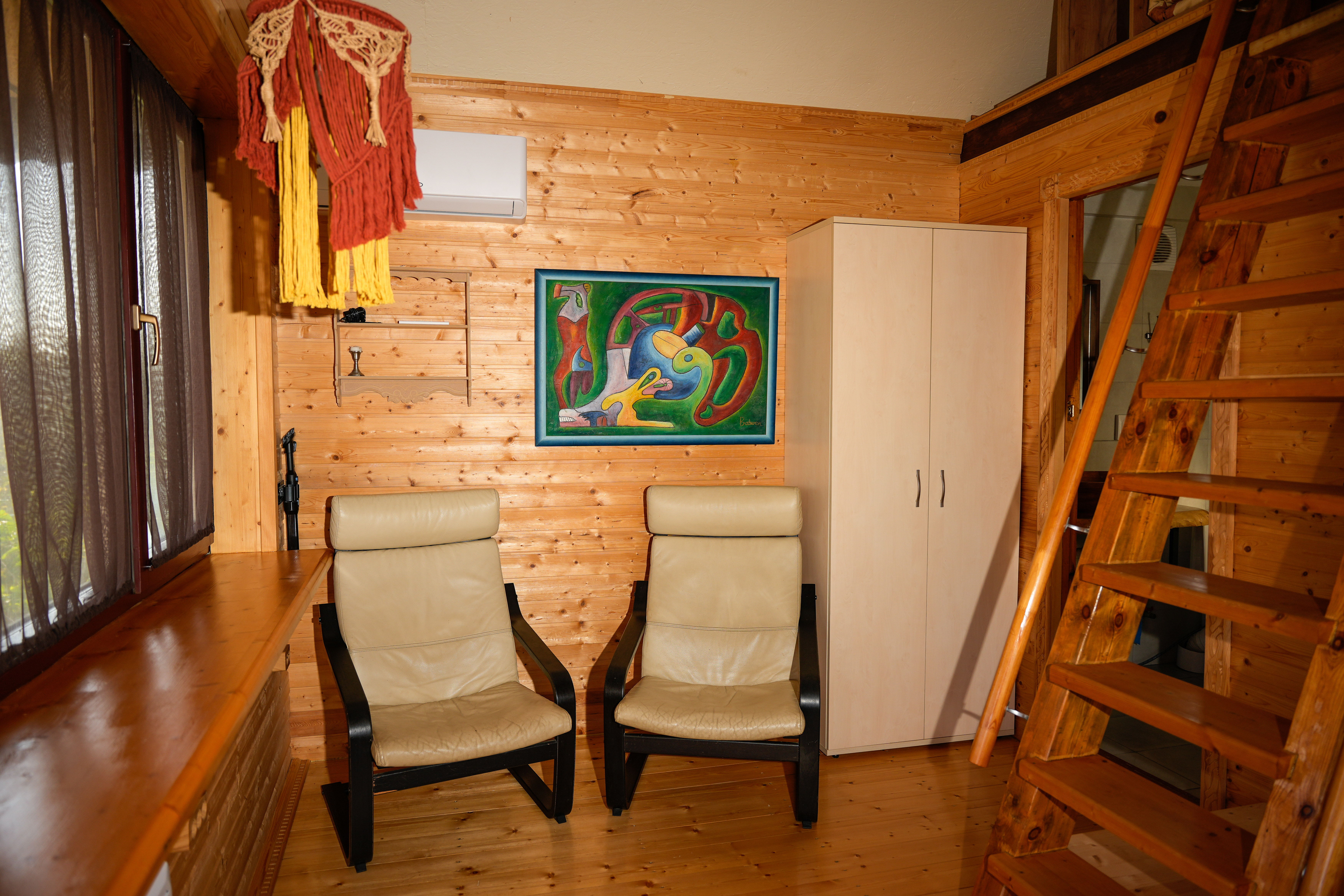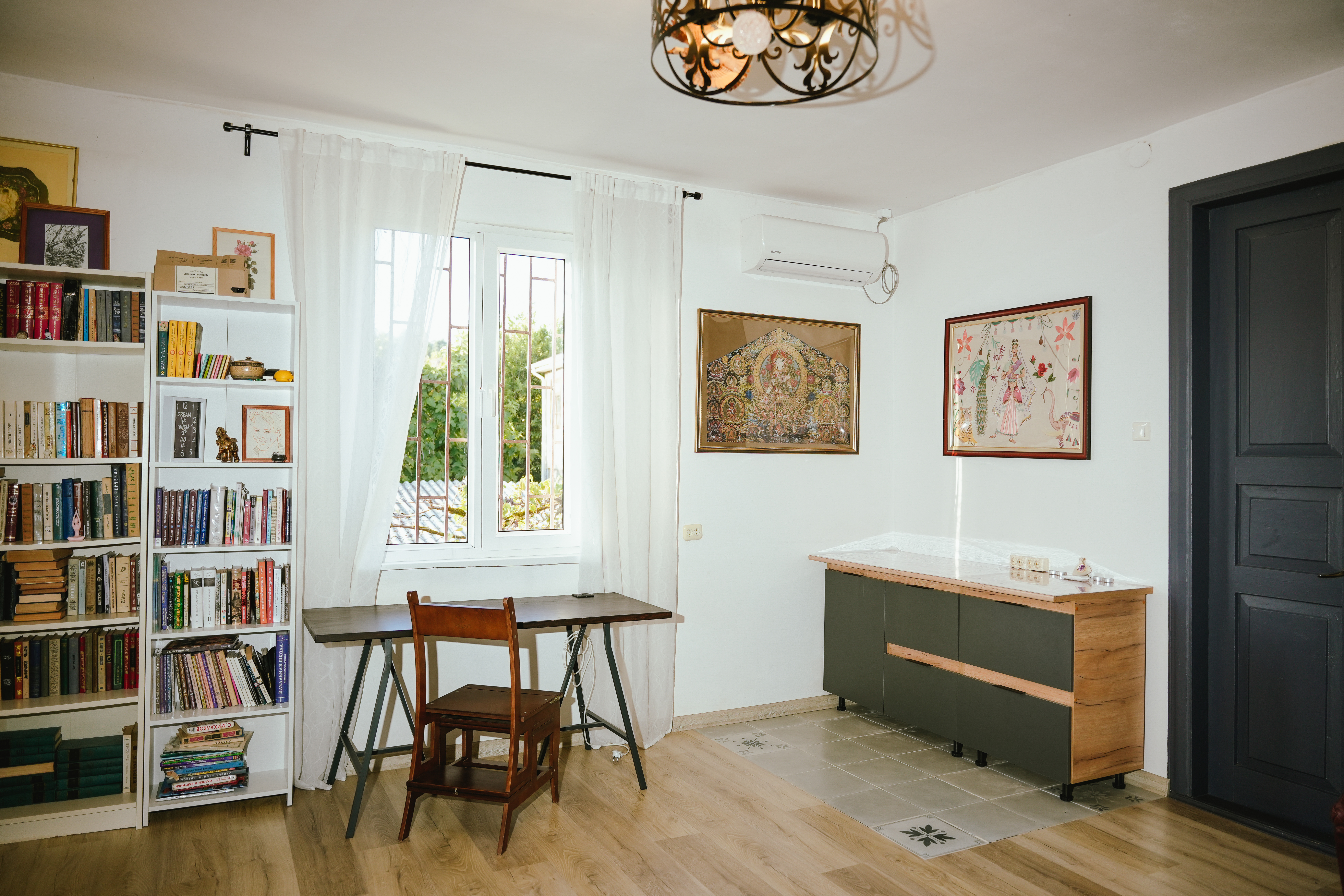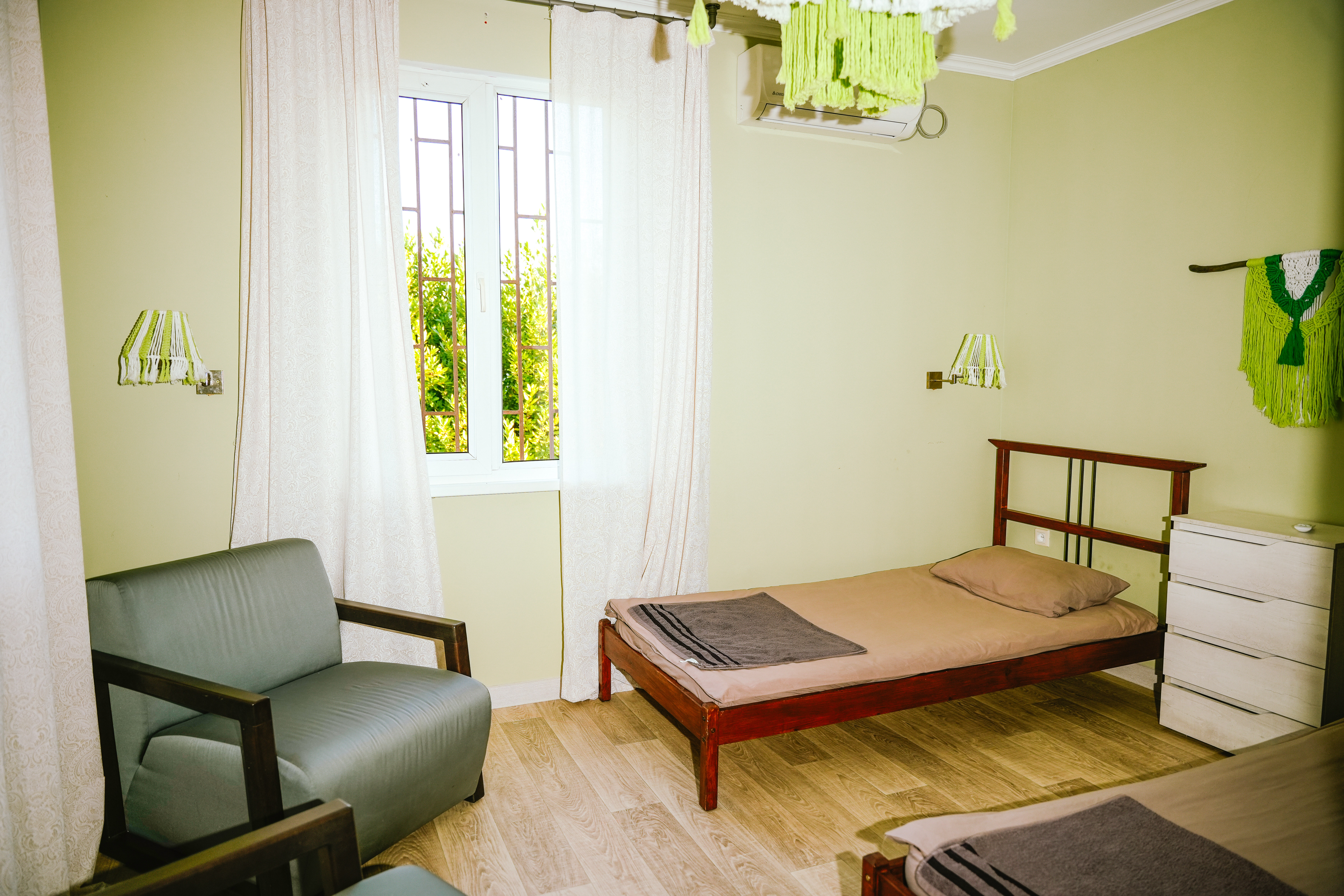 Два этажа с отдельными входами, шесть двухместных комнат, очень большая гостиная и три санузла на каждом. Дружная атмосфера объединяющая участников на ретрите.