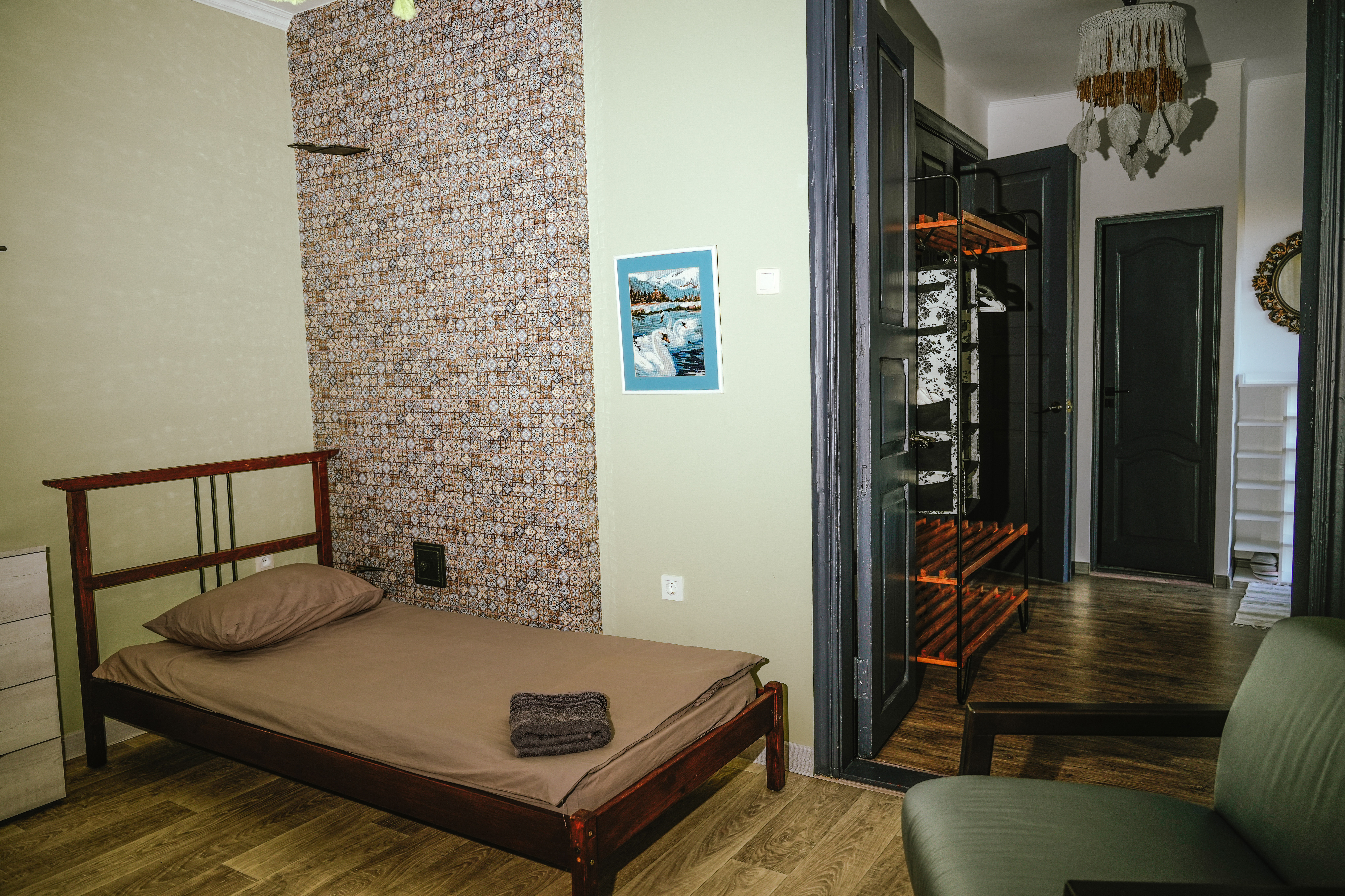 Уютный спокойный интерьер, две изолированные спальни, просторная гостиная, прихожая и санузел, делают это пространство апартаментами спокойствия и домашнего комфорта.